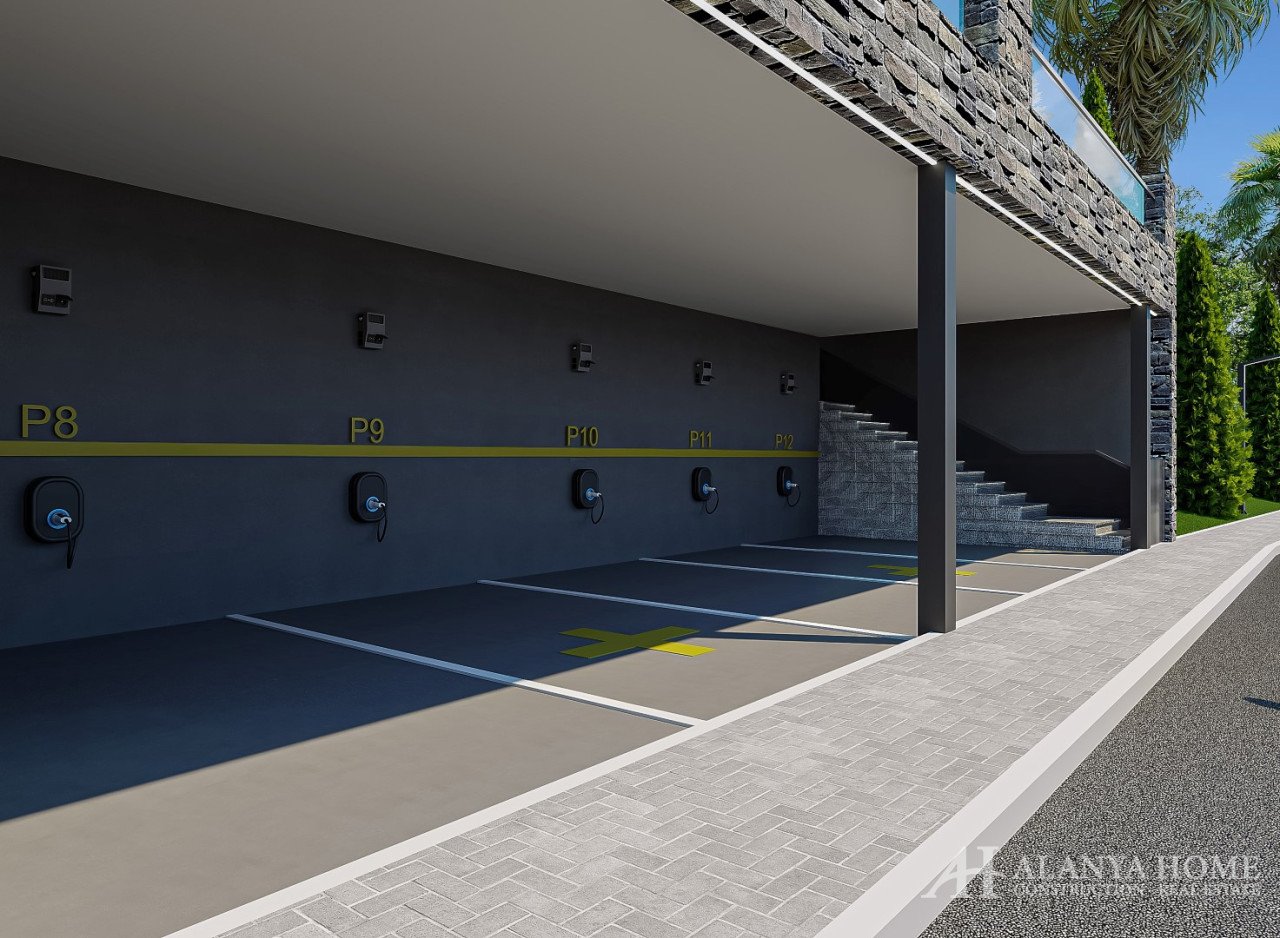 Each apartment is equipped with a €30,000 smart home system, allowing full control over lighting scenes, curtains, sockets, and security components with a single touch or voice command. Specially designed electric vehicle charging units combine functionality with convenience. Fire and burglar alarm systems are provided in every apartment as standard, ensuring the highest level of safety.