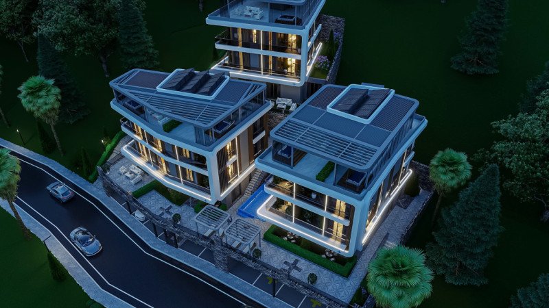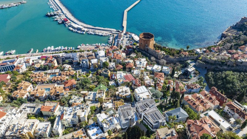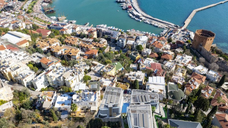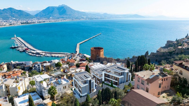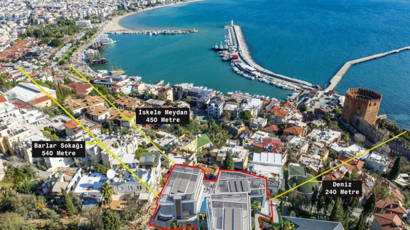 Kale Plus Residence combines modern architecture with advanced technology, offering an exclusive lifestyle with breathtaking Mediterranean sea and city views. The 92 m² duplex 2+1 apartments are ideally located just 240 meters from the sea, 450 meters from the pier, and 540 meters from the entertainment center, providing spacious living areas and panoramic vistas for ultimate comfort.