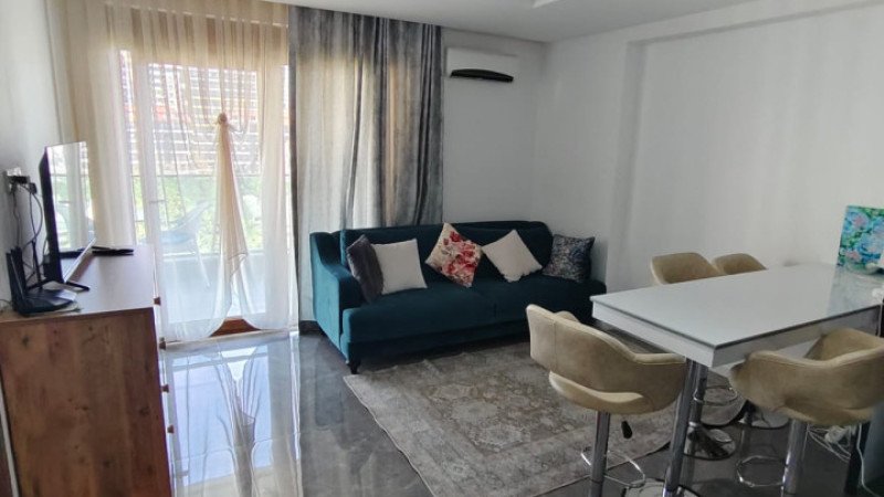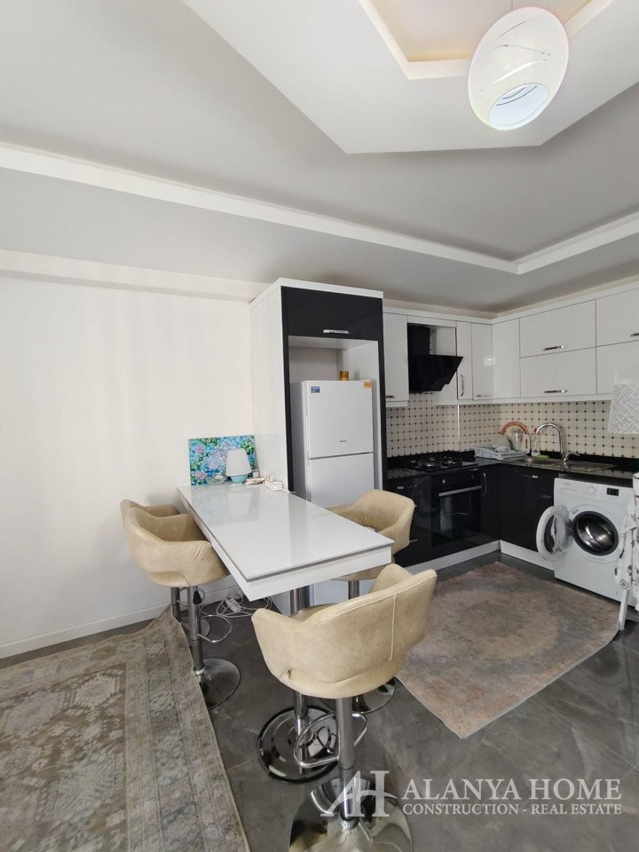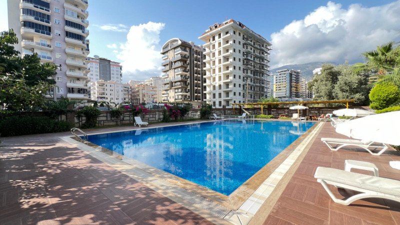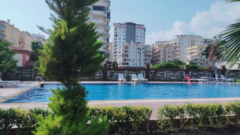 The complex features an outdoor swimming pool, private parking, and an elevator, ensuring ease of daily living. These fully furnished apartments are perfect for those looking for rental or purchase opportunities in Alanya Mahmutlar, whether for summer holidays or long-term stays.