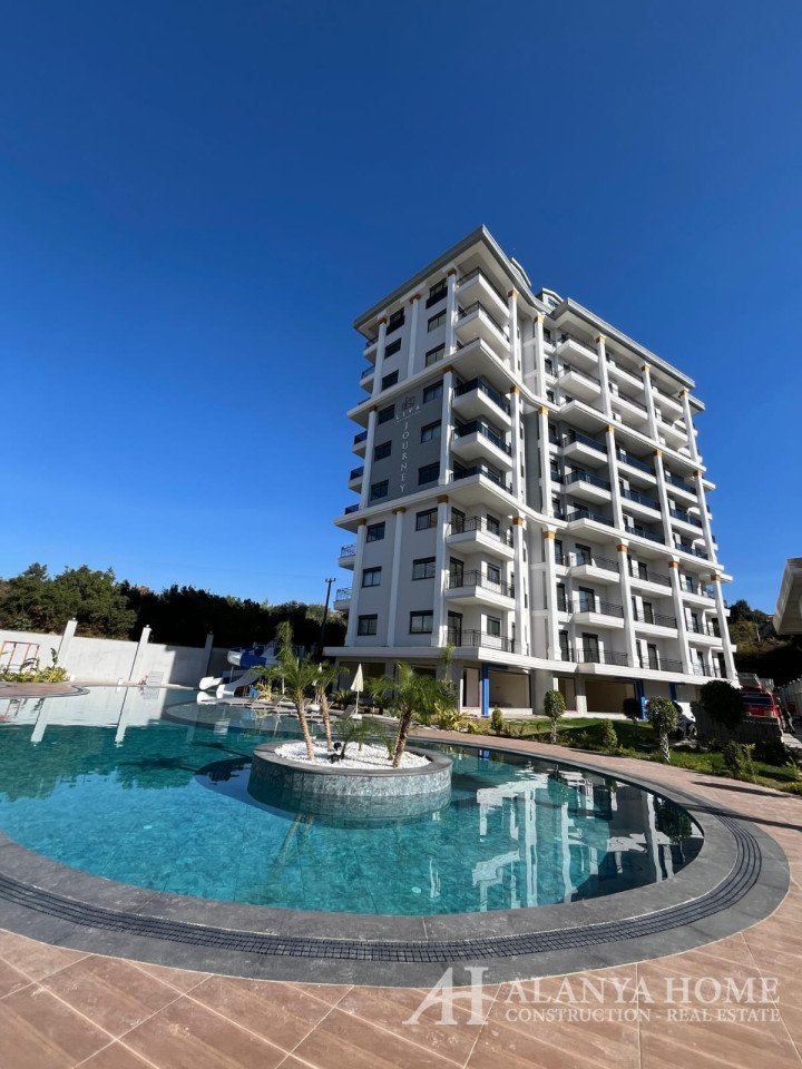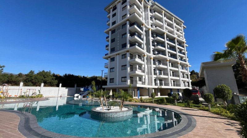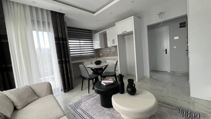 A 1+1 apartment is available for sale in Liva Journey Residence, located in Tosmur Neighborhood. This 50 m² apartment is on the 2nd floor and features an open-plan American kitchen. Fully furnished, the apartment faces south, receiving sunlight throughout the day. It includes 1 bathroom, 1 WC, and 1 balcony. The beach is just 700 meters away.