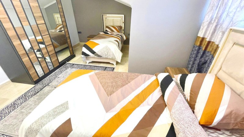 Located in Oba, Alanya, our 3+1, 180 m² corner apartment on the 3rd floor of Elmaslar Site is perfect for residence. The apartment comes fully furnished and, with its southeast orientation, receives natural sunlight throughout the day.