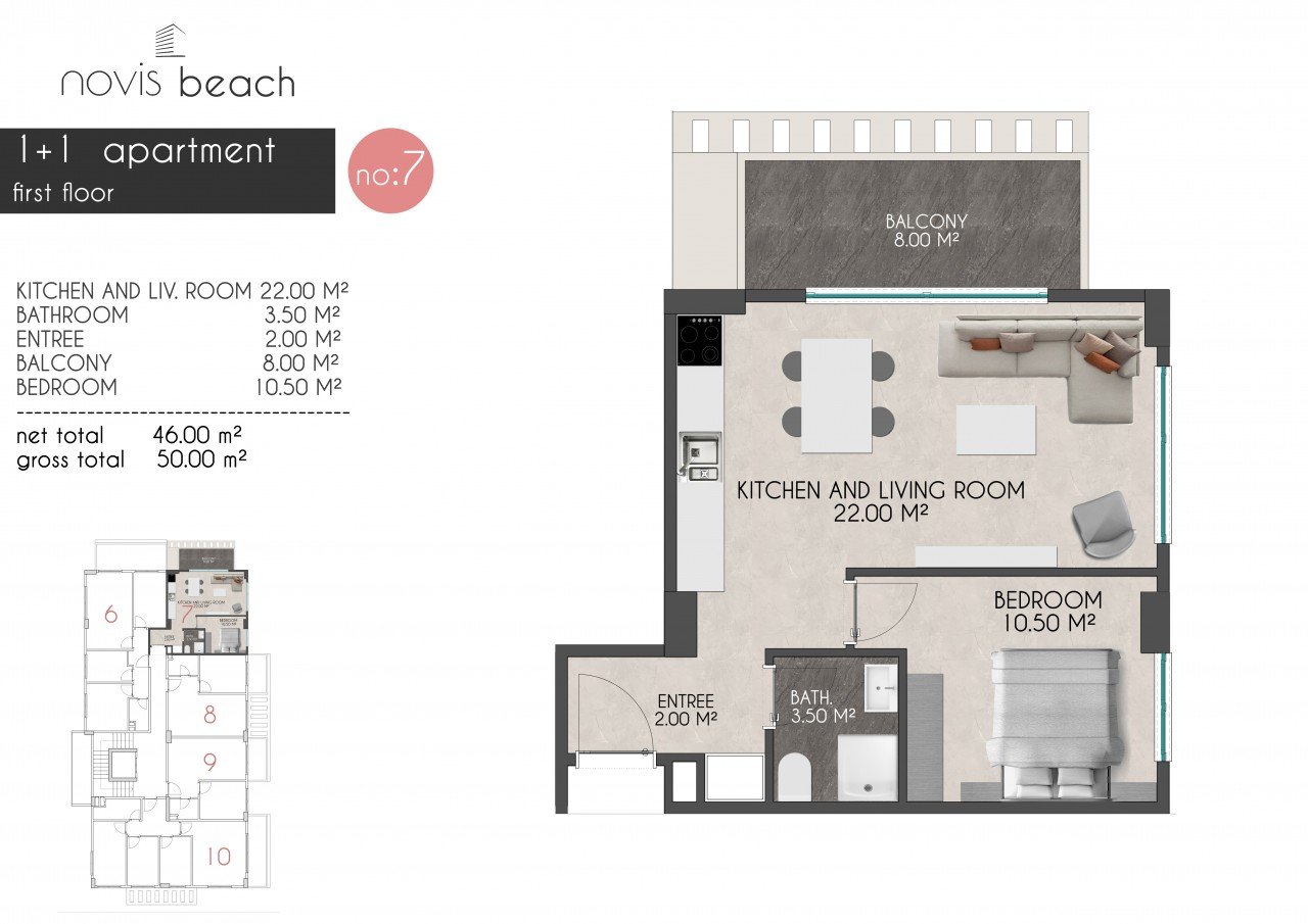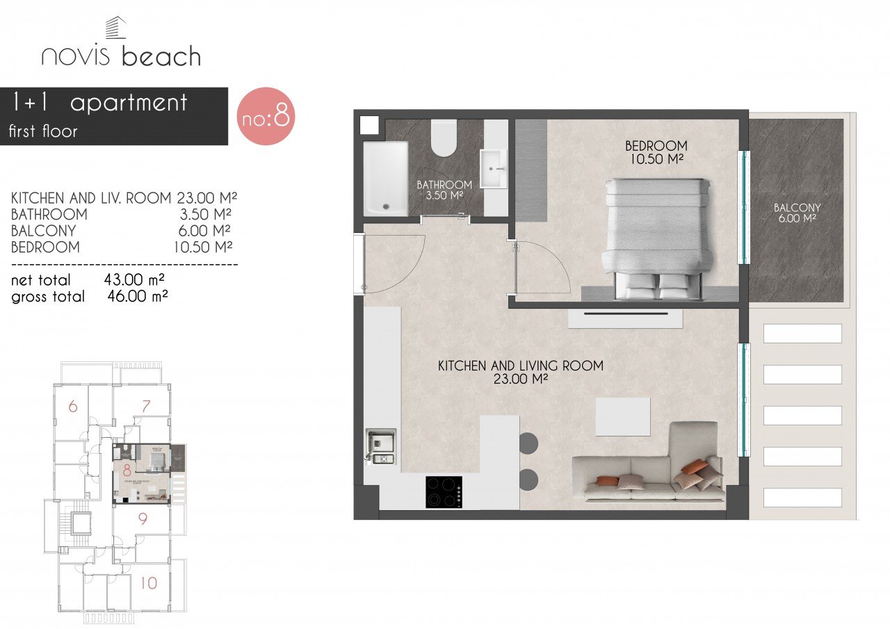 Naš projekat se nalazi na mirnoj lokaciji, okrenut prema Mediteranu, 29 km od aerodroma Gazipaşa i samo 6 km od centra Alanje. To je mjesto za uživanje 150 metara od tržnog centra i samo 50 metara od kafića i restorana. U krugu od 2,5 km nalaze se veliki tržni centri. Pored prostora na kojem se nalaze projekti nalazi se najnoviji park u regionu. Do Mediterana je vrlo lako! Lako možete doći do plaže sa nadvožnjakom koji se nalazi odmah ispred projekta, bez brige o saobraćaju. Karakteristika zoniranja regiona takođe pruža veoma dobru prednost; U regionu nema problema sa parkiranjem i saobraćajem zahvaljujući velikim baštama. U našem projektu 3 jedinice, 2+1 vrt dupleks (100-130 m2) Cijene od 168.000€ 3 stana, 1+1 stan (46 – 50 m2) 4 stana, 2+1 stan (72 m2) 2 jedinice, 2+1 krovni dupleks (145- 160 m2) Cijene od 335.000 € Sve sa pogledom na more Bazen 24/7 sigurnost Parking Sauna teretana Posebno dizajnirane zelene površine