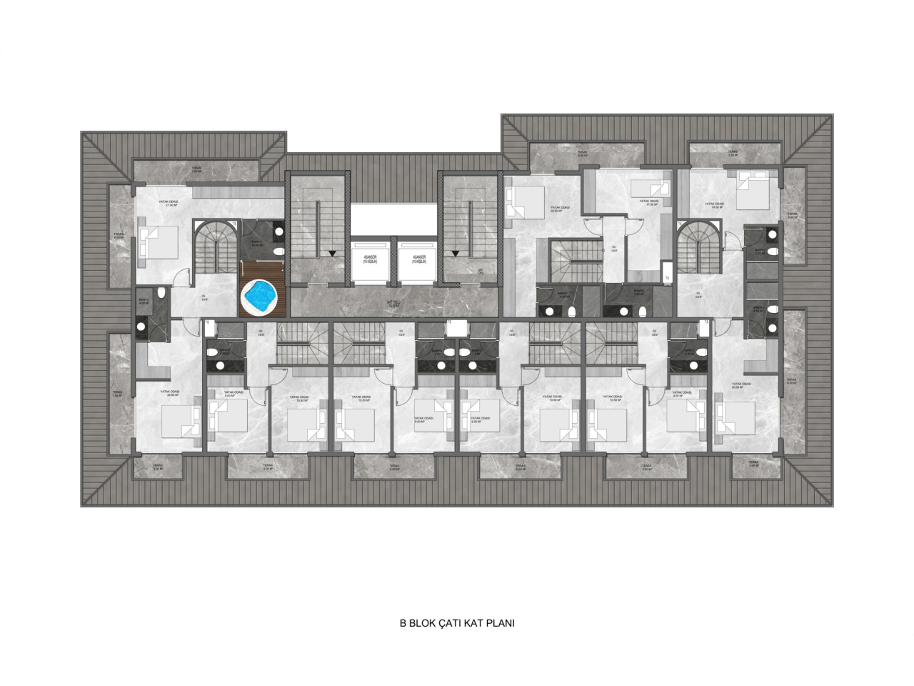 Apartman kompleksi 117 daireden oluşmaktadır: