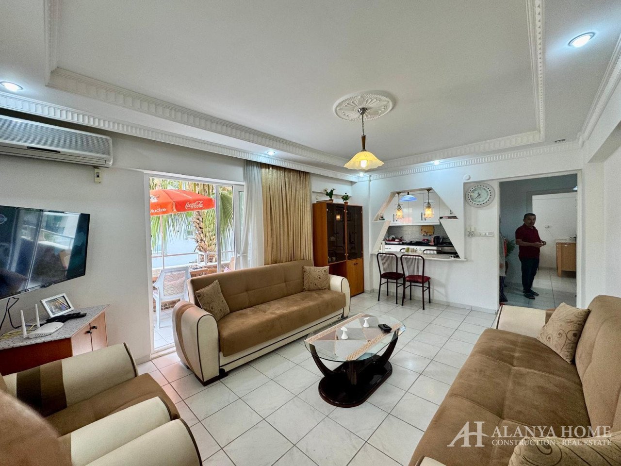 Located in the center of Mahmutlar, just 2 buildings away from Barbaros Street and 250 meters from the beach, this 3rd-floor apartment features: