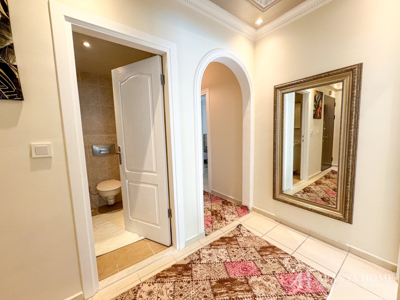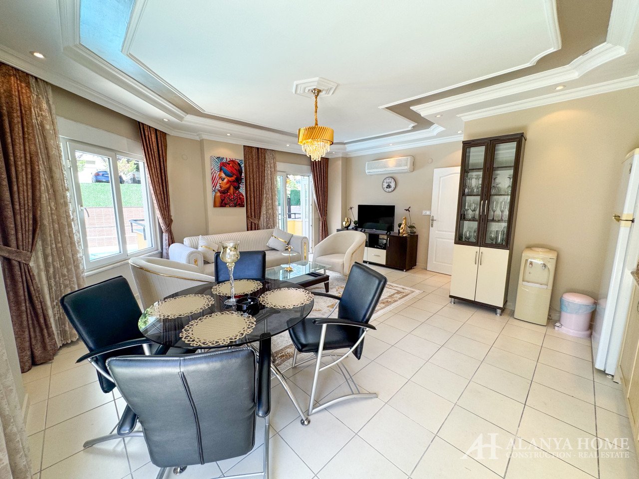 This fully furnished 2+1 apartment in Chalis 2 Site, Alanya, offers a spacious 120 m² living area with two toilets and one bathroom. Located just 700 meters from the beach, the apartment features a northwest-facing layout with a beautiful pool view, providing a bright and airy living environment.