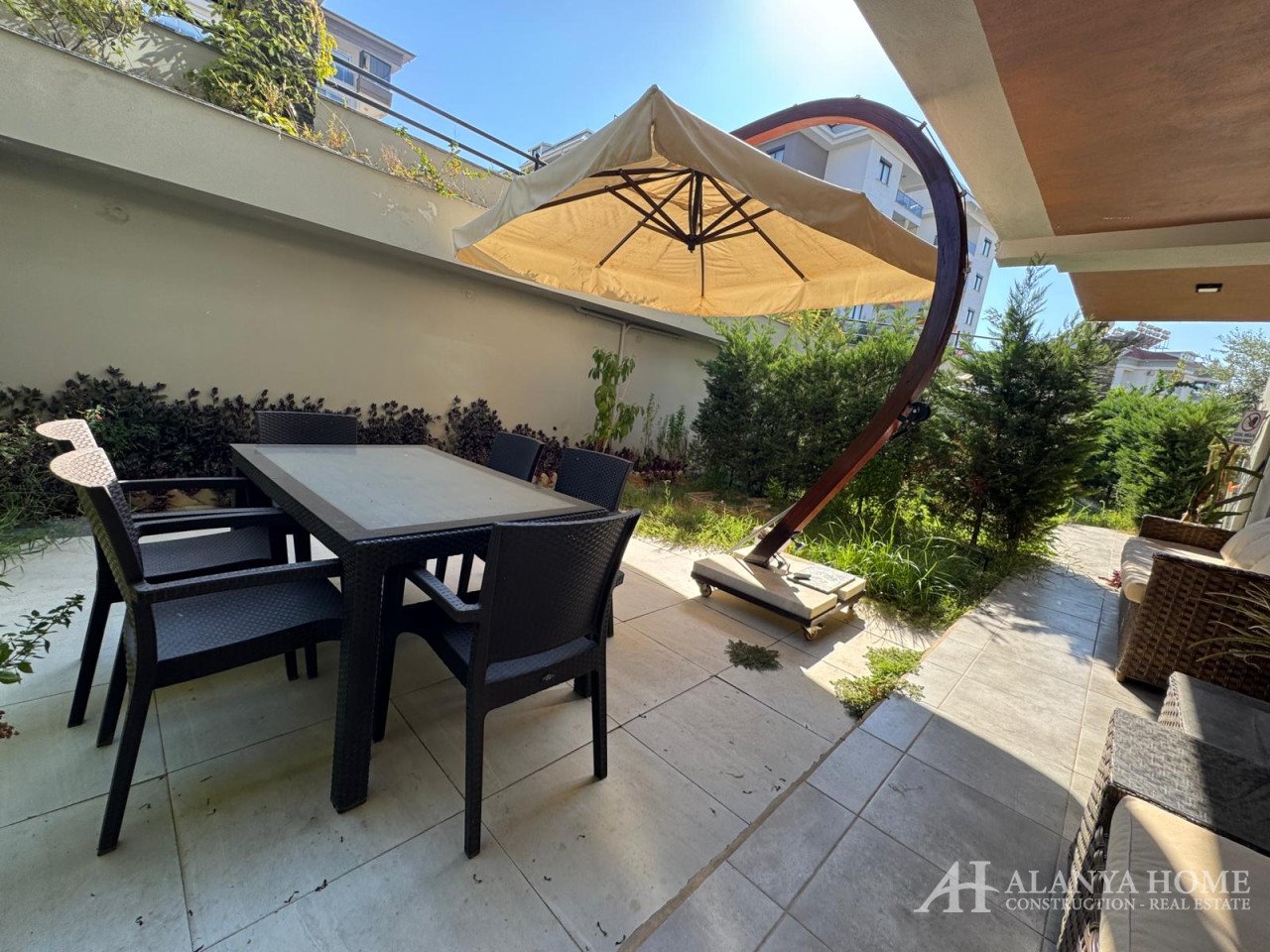 Находится на цокольном этаже с выходом в частный сад, что делает ее идеальной для семейного отдыха или круглогодичного проживания. Южно-западная ориентация обеспечивает отличное естественное освещение в течение всего дня. Расстояние до моря — всего 1 км.