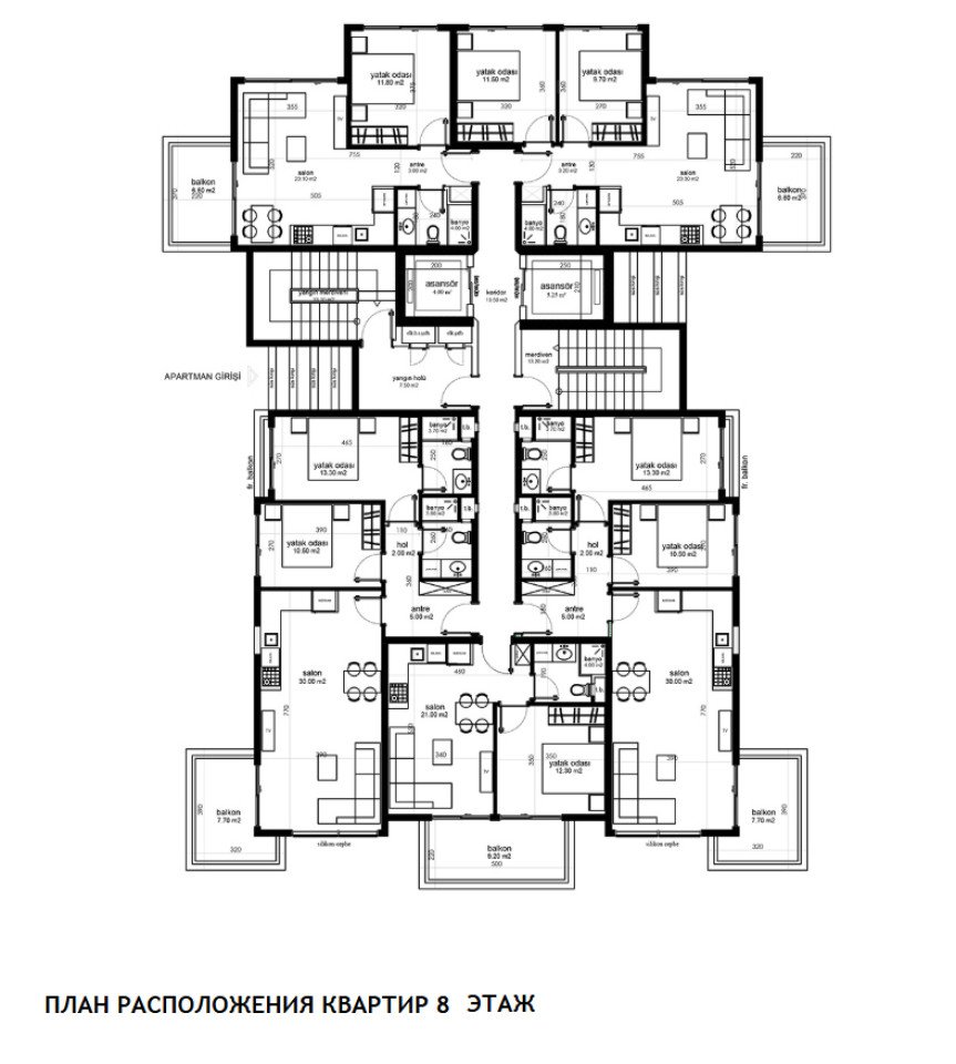 The residential complex is built on a 5,500 m² plot and consists of 3 blocks, each with 13 floors. Just 600 meters from the sea, this property is ideal for both permanent living and investment purposes.