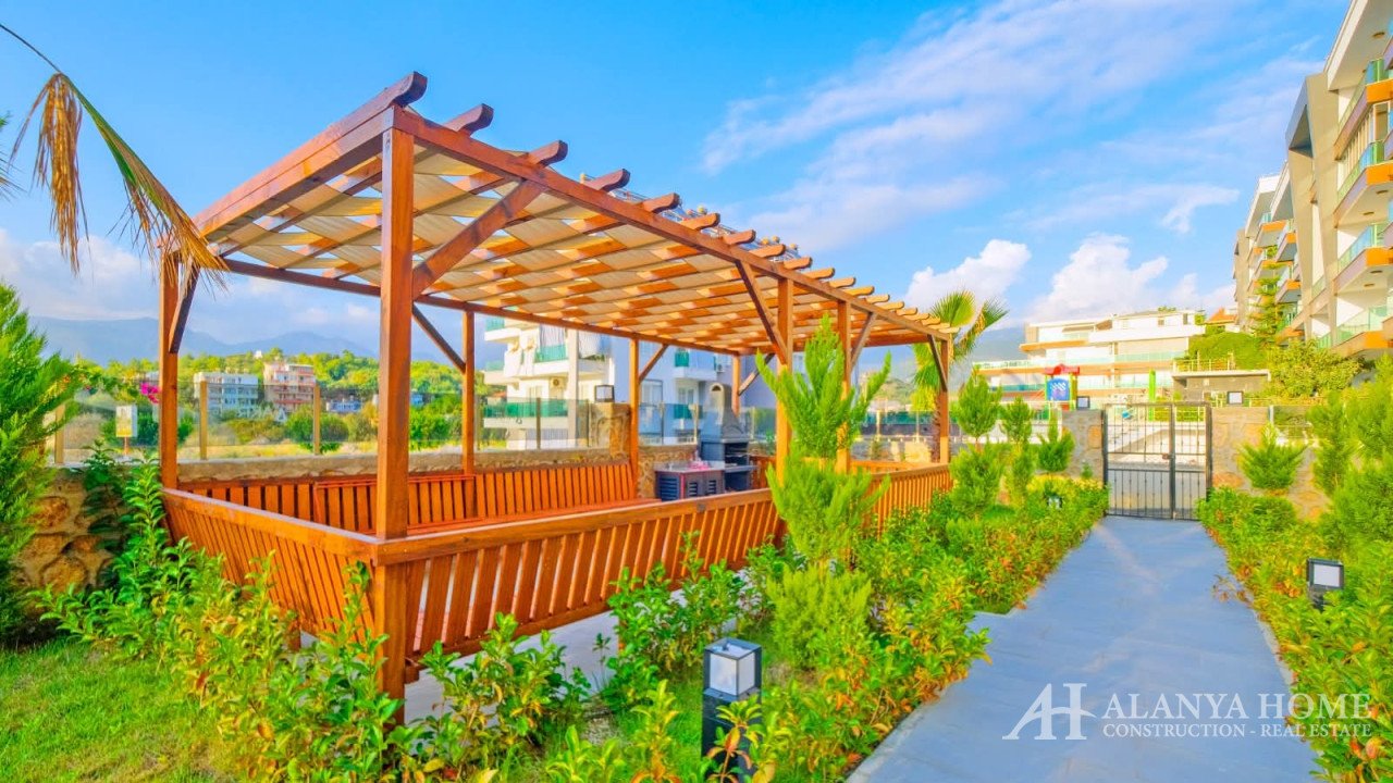 The complex offers a range of amenities including an outdoor swimming pool, sauna, fitness center, barbecue area, gazebo, covered parking, generator, elevator, and 24/7 camera security. Built in 2023, this sea-view duplex is only 650 meters from the beach, making it an ideal choice for both investment and living in Alanya.