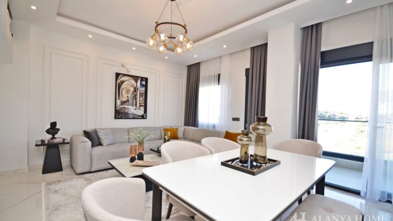 This modern 2+1 duplex apartment in Elisya Residence, Kestel/Alanya, offers a spacious open-plan living room with a kitchen, two bedrooms, two bathrooms, and a guest toilet, providing a comfortable and stylish living experience. The apartment features two large balconies with stunning sea and pool views and is fully furnished, ready to move in.