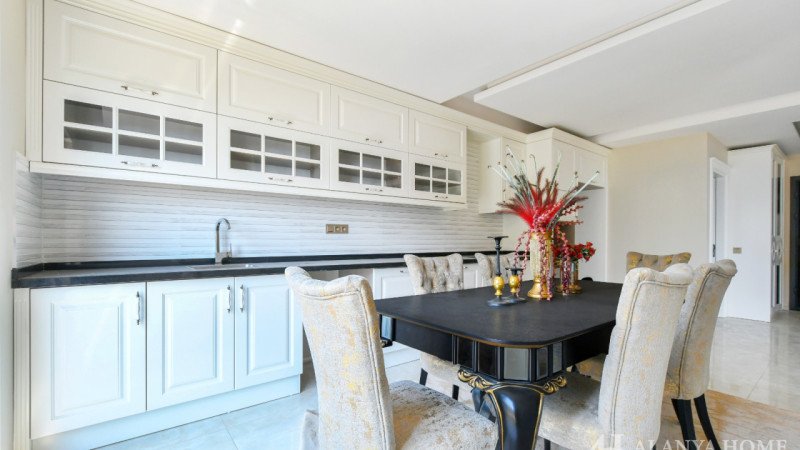 The fully furnished 3+1 apartment, situated on the 5th floor, features a spacious 205 m² living area with a modern and functional interior design. The residence is only 100 meters from the sea, providing easy access to the beach and a high-quality Mediterranean lifestyle.