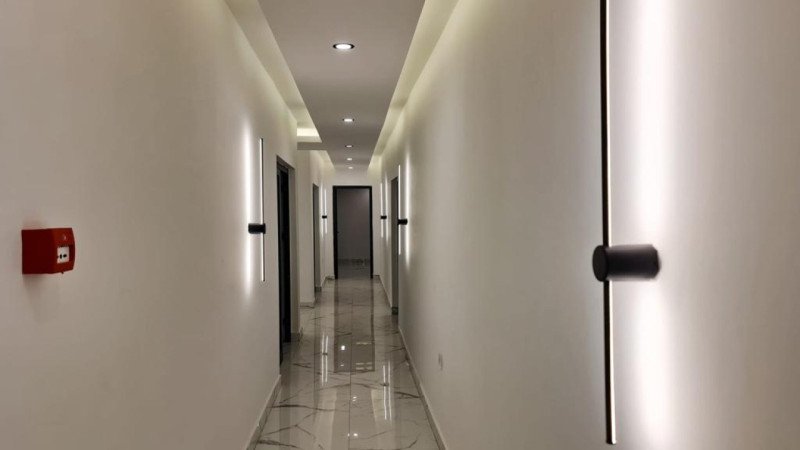 The residence is within walking distance to the sea and offers rich social facilities including an outdoor swimming pool, elevator, Turkish bath (hamam), sauna, fitness center, and steam room.