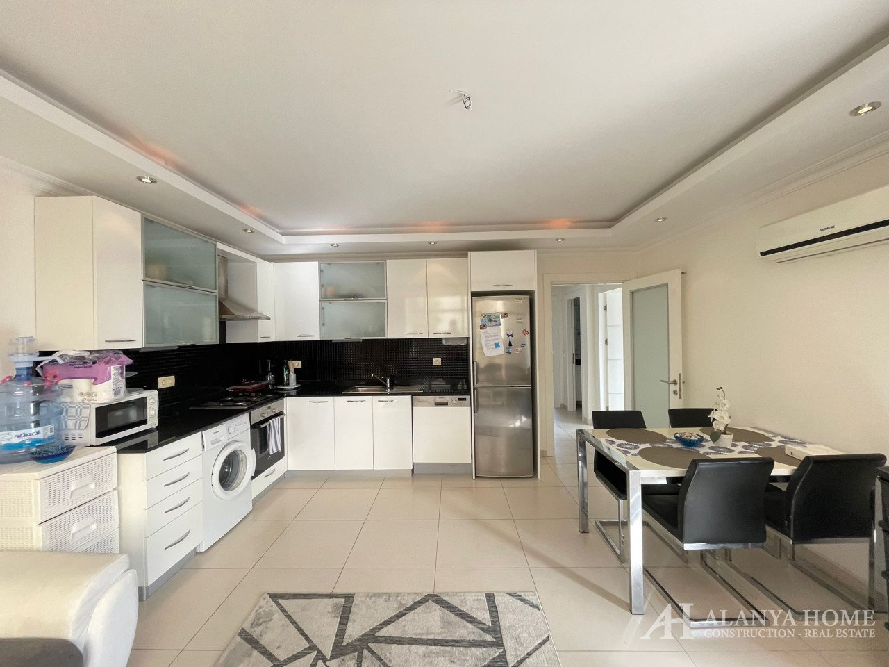 Built in 2013, the apartment is equipped with an air-conditioning heating system, ensuring year-round comfort. The property is only 500 meters from the sea, making it ideal for both holiday use and permanent living, as well as a strong investment opportunity in Alanya.