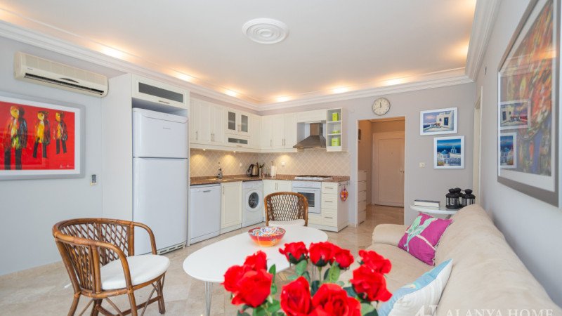Located in the popular Cikcilli area of Alanya, this 1+1 apartment in the Alcon 22 residence stands out as it is suitable for residence permit (ikamet), making it an excellent choice for foreign buyers and long-term living.