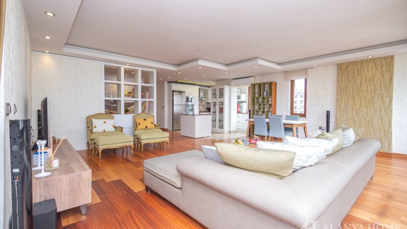 Просторная квартира 3+1 в Алании (Оба) — с видом на море, меблирована, подходит для гражданства