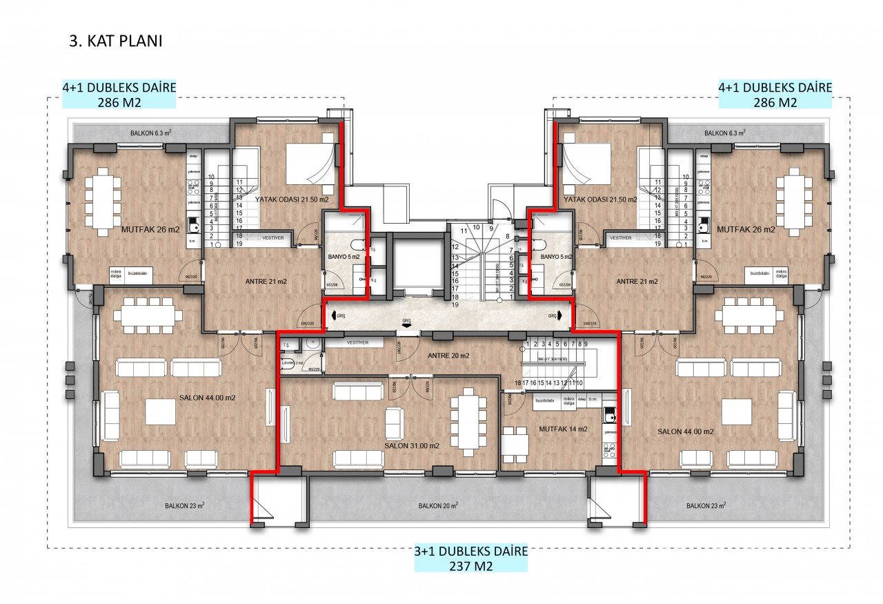 - 4 + 1 дуплекс (292 м2) в нашем проекте - цены от 1.650.000 TL