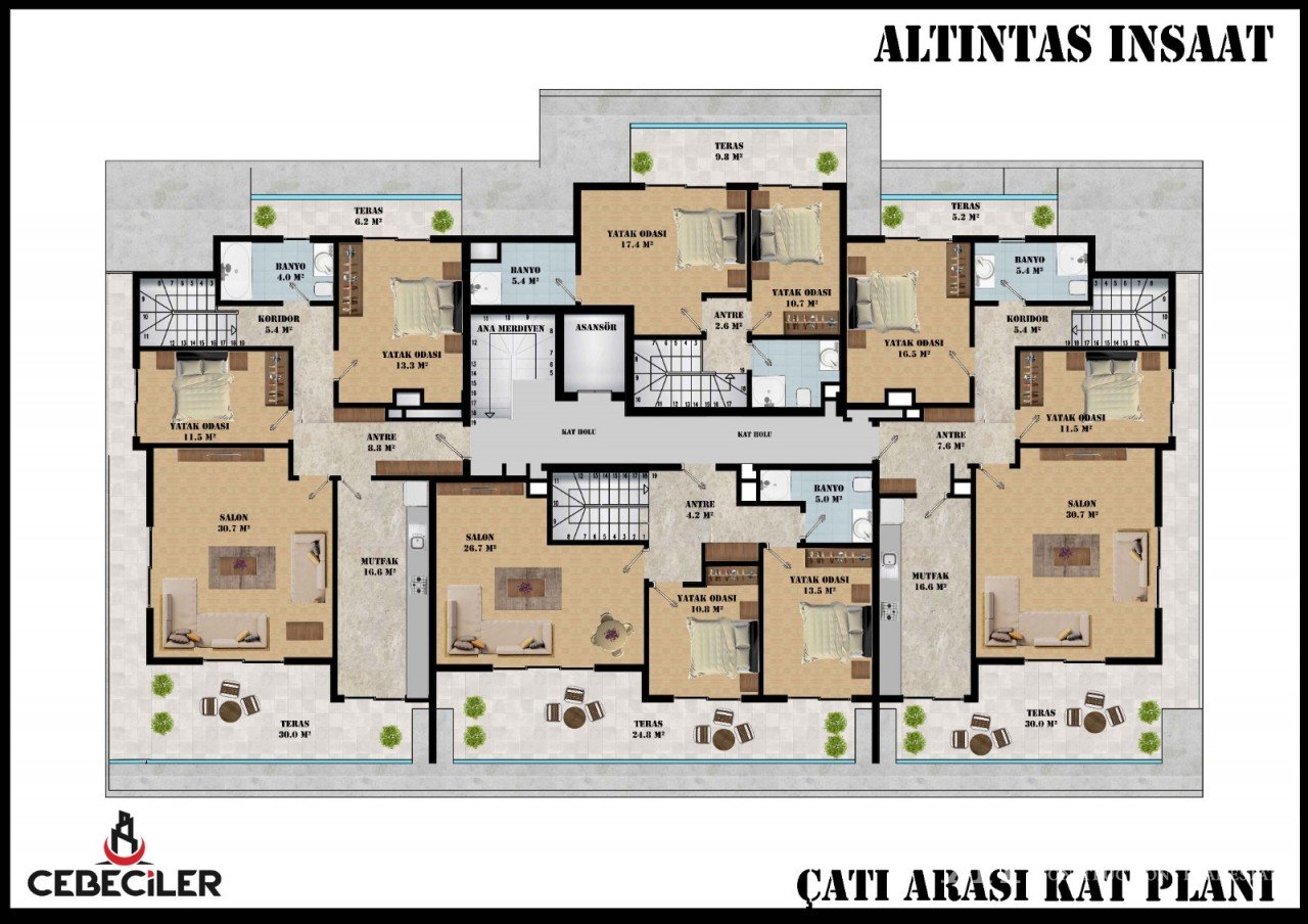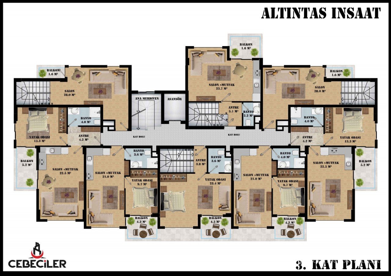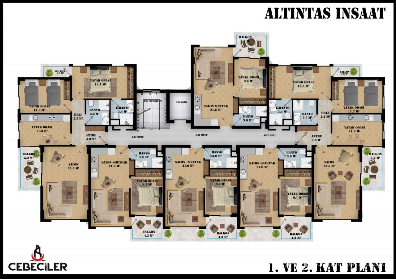 Nouveau projet à Oba, Alanya Le projet est situé à Oba, ville d’Alanya, entouré par la nature et à une courte distance du centre administratif de la ville. Le complexe résidentiel se compose d’un bloc de 4 étages et d’un total de 27 appartements. Les aménagements comprennent: Appartements 1 + 1 2 + 1 appartements avec cuisine séparée Appartements duplex (duplex) 2 + 1 Appartements duplex (duplex) 3 + 1 avec séparé…