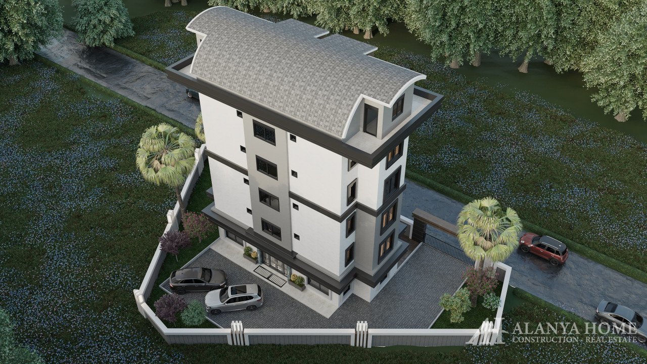 Un nouveau complexe à construire sur un terrain privé clôturé : 1 bloc, 5 étages, 8 appartements au total.