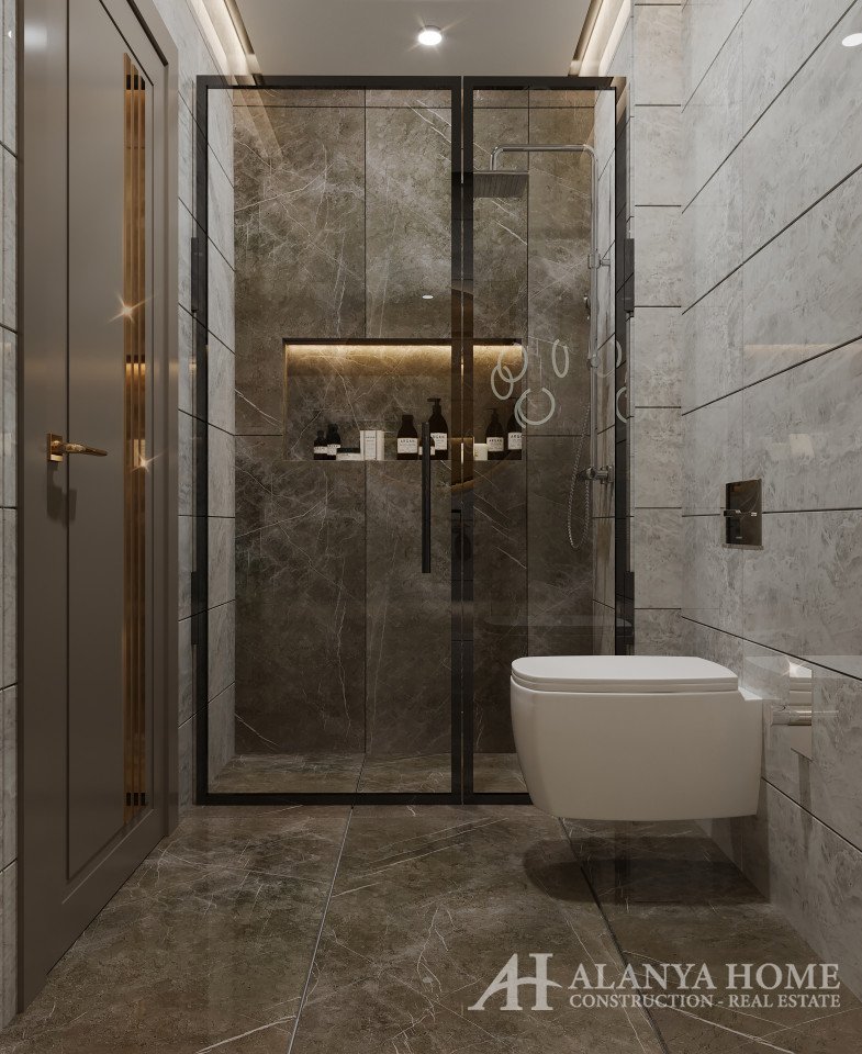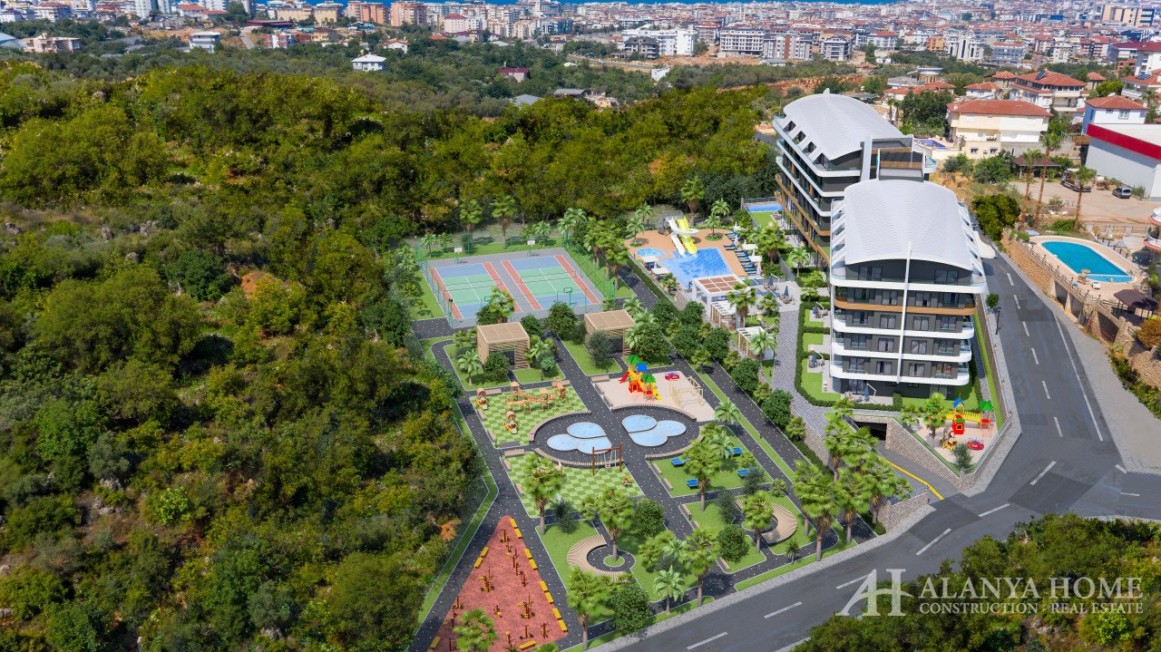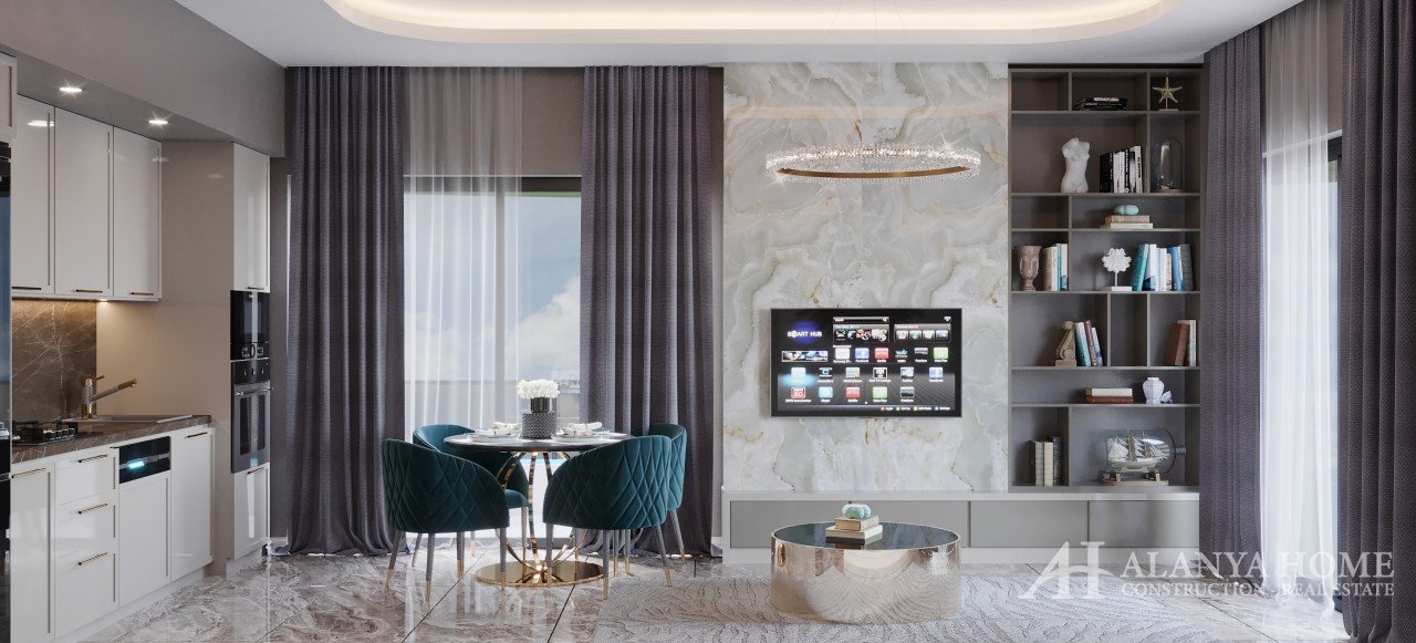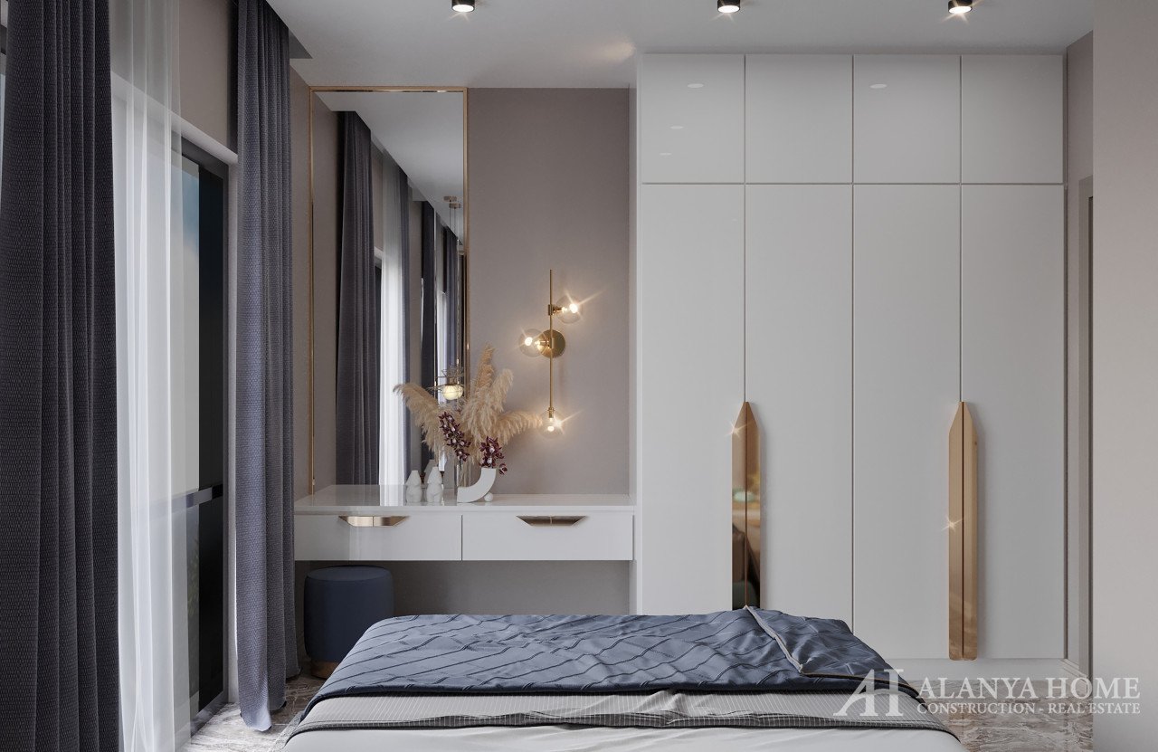 All apartments are furnished with high quality modern furniture, including: steel entrance door, video intercom, double glazing on the windows, balcony, interior doors, built-in kitchen with granite work surface, equipped bathroom (shower, plumbing kit, built-in furniture, wall mirror), basic and decorative lighting, flooring - ceramic tiles, walls - washable paint, sockets and switches, TV cable, air conditioning wiring. High quality building materials. Excellent, unique property offer in Oba, for investment as well as for comfortable living.