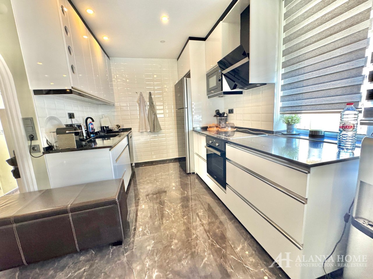 Located in one of Alanya's most sought-after neighborhoods, this fully furnished 2+1 duplex apartment in the Utopia 1 complex offers villa-style living with 130 m² of indoor space. Positioned on the first floor with a southwest orientation, it enjoys plenty of natural light throughout the day.